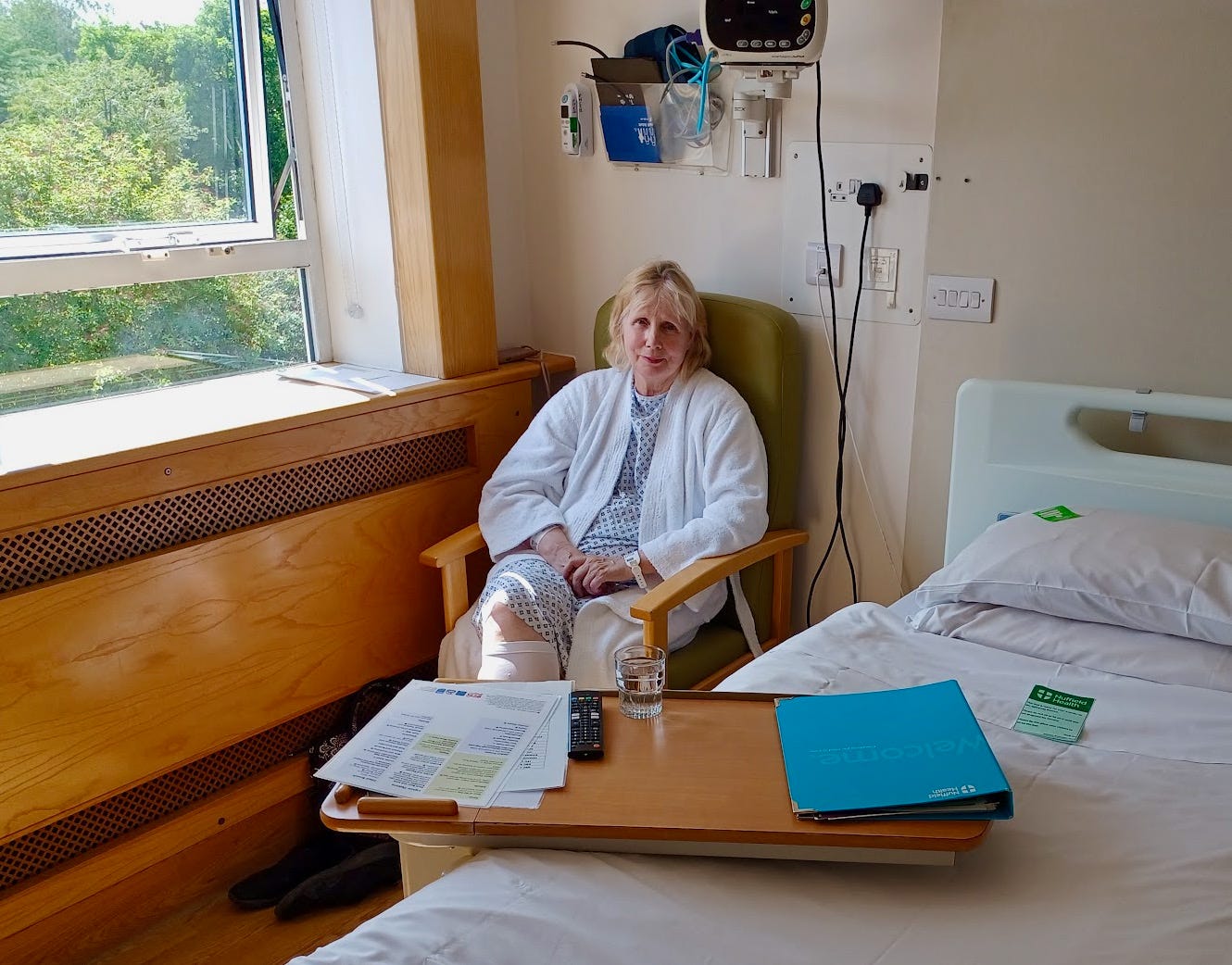I began changing into a hospital gown with Robin’s help.
